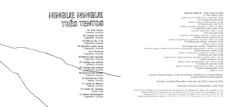 O novo disco, “Três Tentos”, foi buscar o seu nome ao tema que abre o disco, uma moda de dança recolhida em Cativelos pelo padre António Morais. Aliás, todos os temas resultam de recolhas daquele estudioso e musicólogo, que gentilmente nos cedeu acesso ao seu acervo musical e aos seus registos.